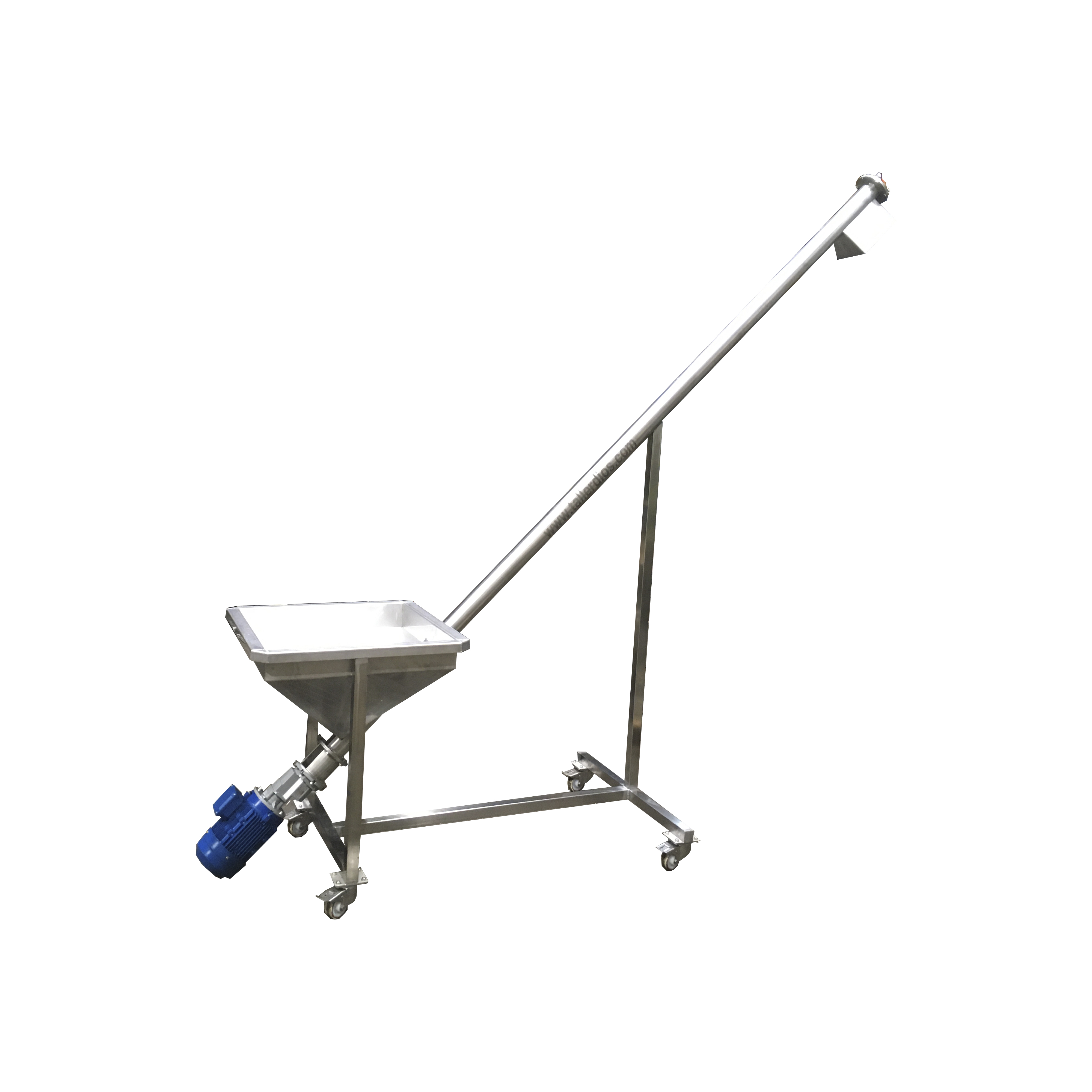 Dimensiones adaptables a las necesidades de producción. Estructura construida en acero inoxidable AISI 316 ó 304. Accionada por un motor eléctrico. Regulación de velocidad por medio de regulador l. Eje helicoidal de chapas.